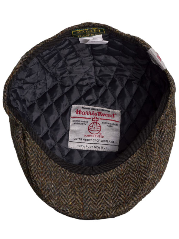 Flat Cap 670 Harris Tweed Brown Herringbone with Overcheck