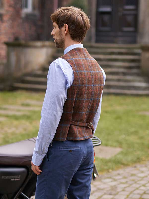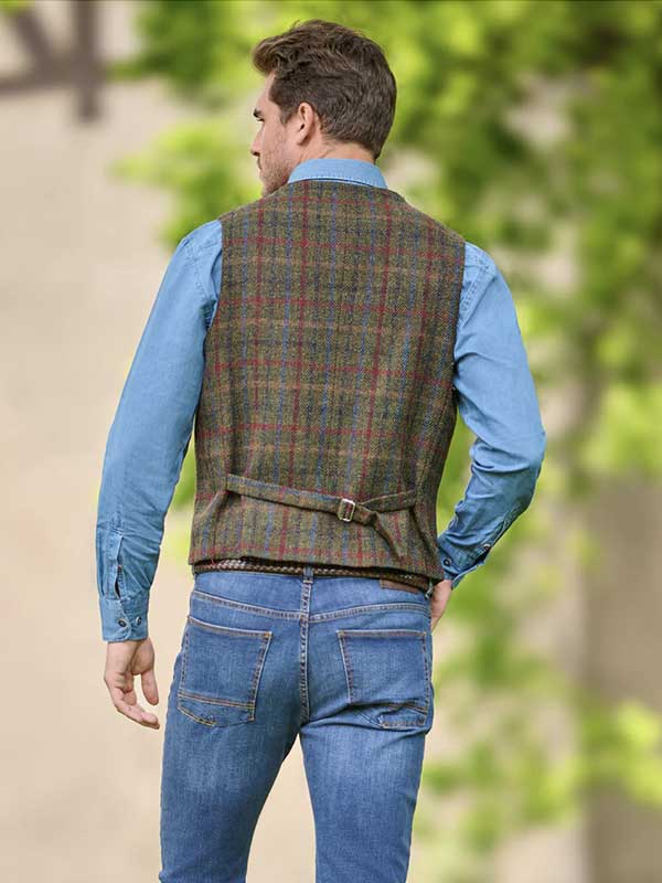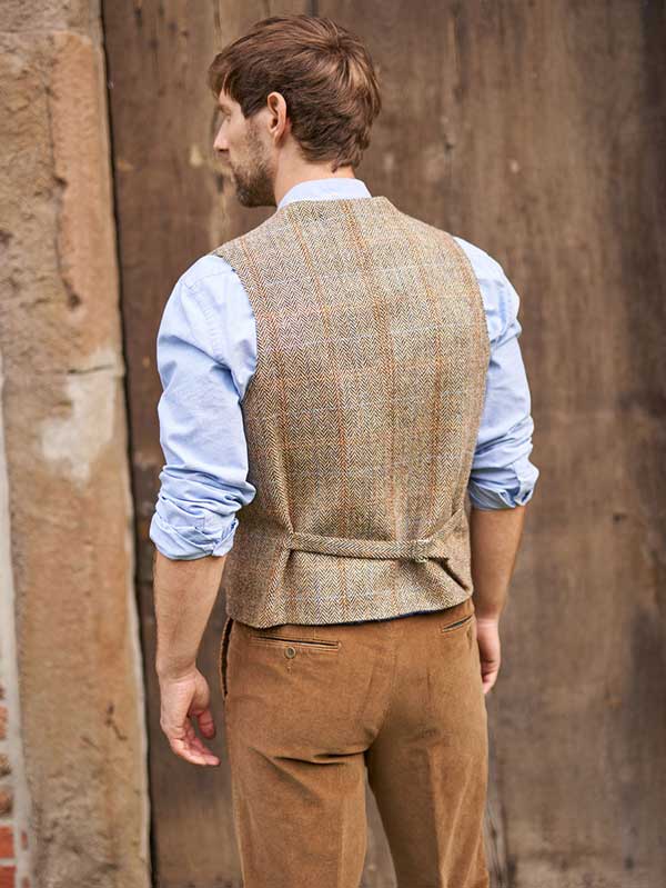 Harris Tweed Vestje Wales Met Revers In Highland Check