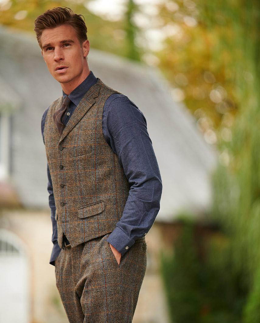 Harris Tweed Vestje Wales Met Revers In Lord’s Overcheck