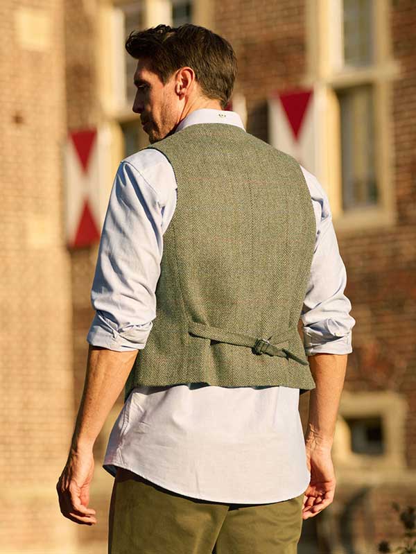 Harris Tweed Vestje Wales Met Revers In Light Green