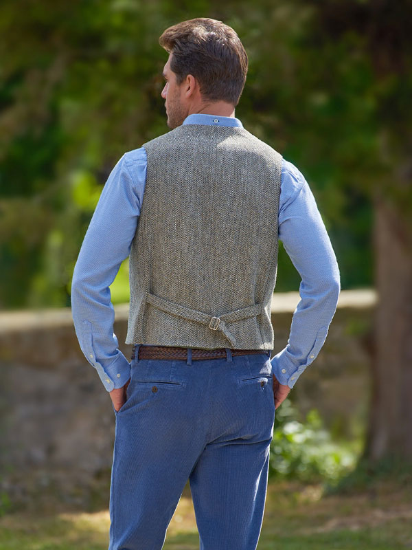 Harris Tweed Vestje Wales Met Revers In Sand Herringbone