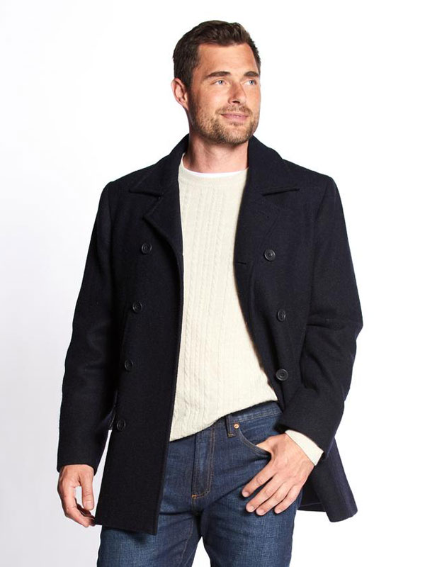 Harris Tweed Coat, Ferry Reefer Coat – Navy Plain