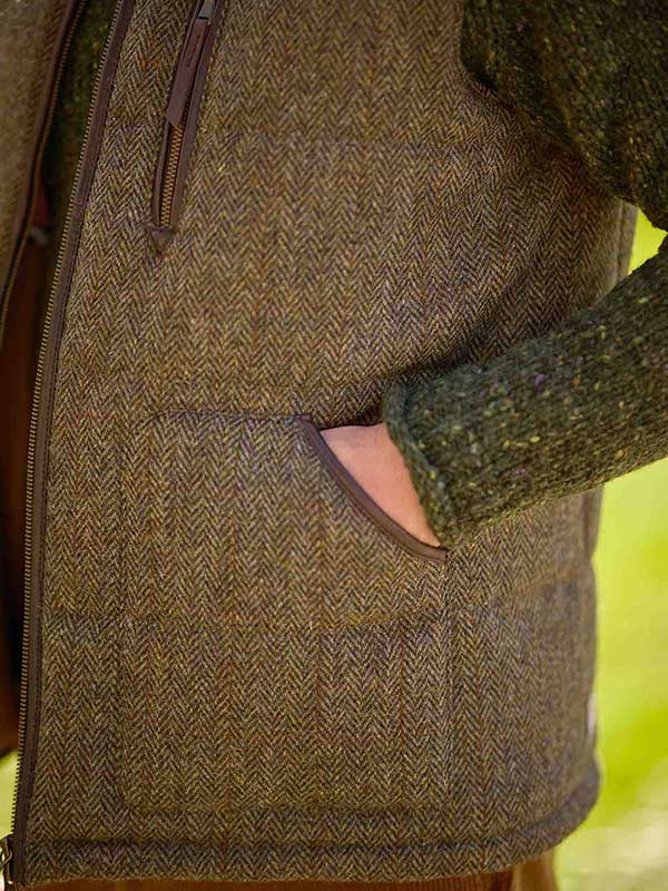 Harris Tweed Bodywarmer “Levi” Gevoerd Met Lederen Applicaties