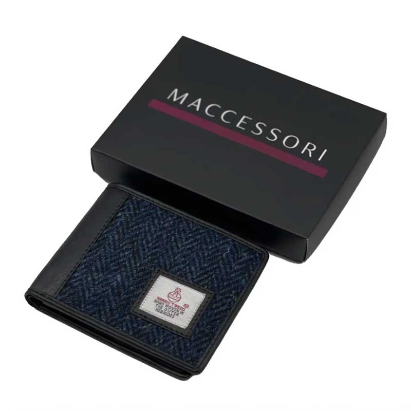 Harris Tweed Bifold Wallet In Blue.