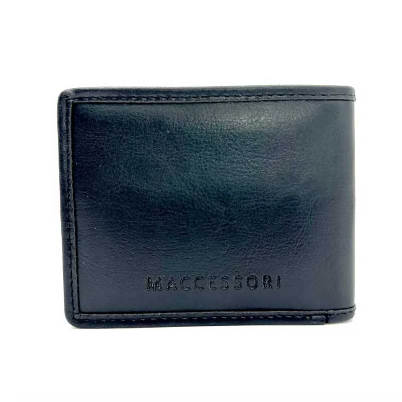 Afmetingen van de opvouwbare herenportemonnee: 9 cm x 11 cm x 1 cm.