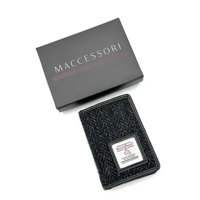 Harris Tweed Card Holder In Charcoal.