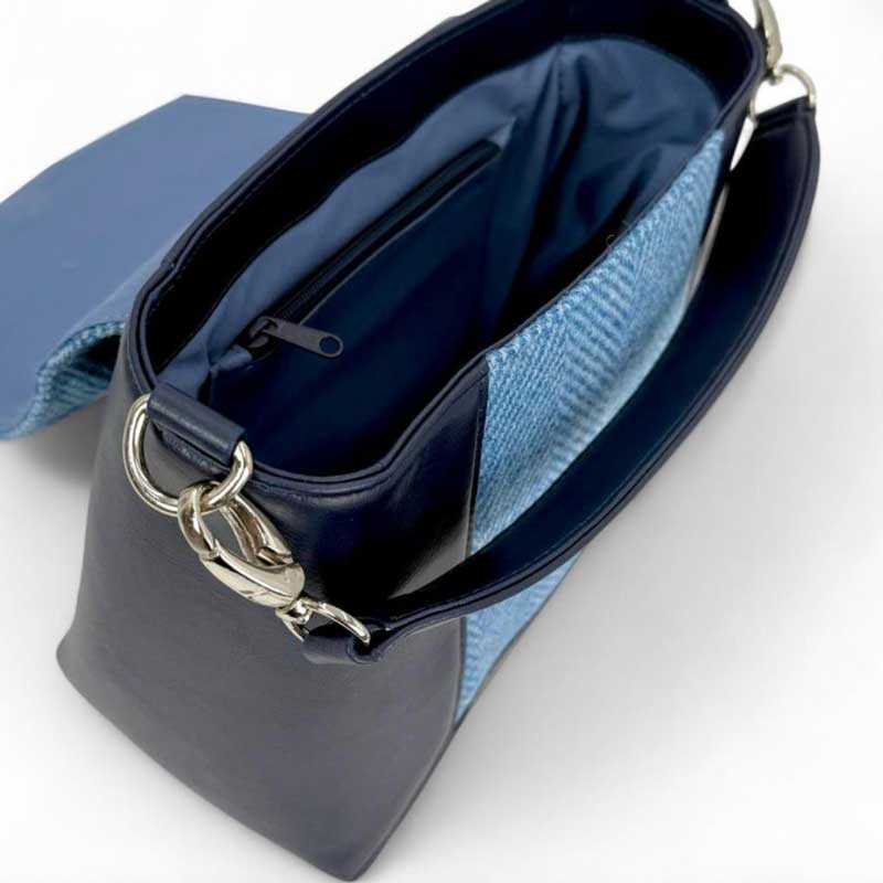 De Harris Tweed tas heeft handige open en afsluitbare vakken aan de binnenkant, evenals een ritsvak aan de achterkant, waardoor hij perfect is voor dagelijks gebruik. Een stijlvolle mix van traditie en eigentijds design, het is een veelzijdig item dat in elke garderobe past.