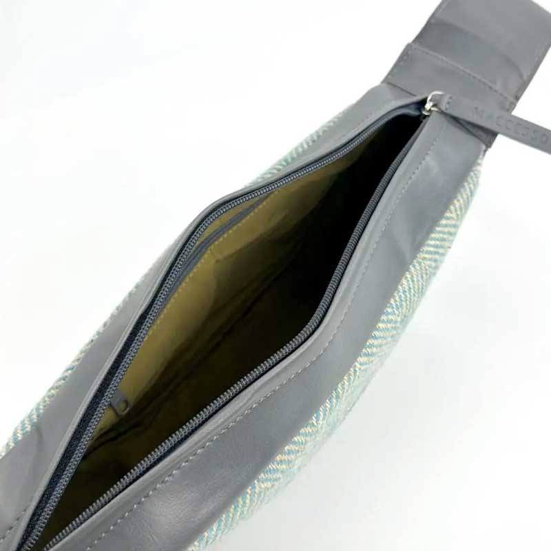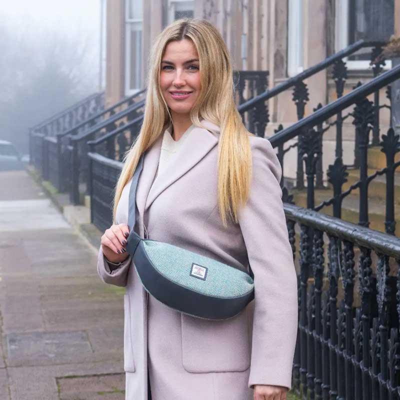 Harris Tweed Sling Bag In Turquoise Herringbone.