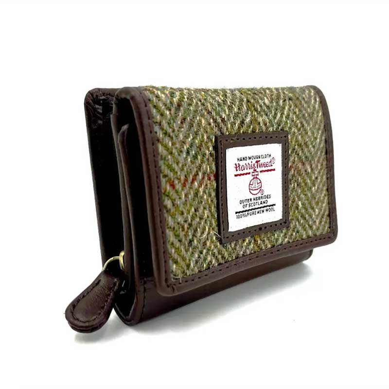 Harris Tweed Trifold Purse In Country Green.