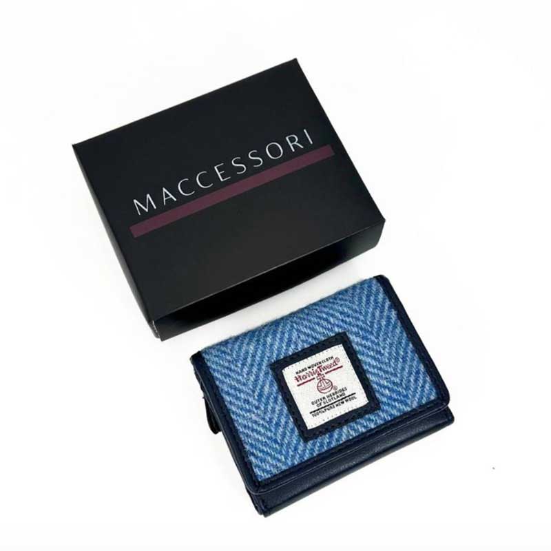 Harris Tweed Trifold Purse In Sky Blue.